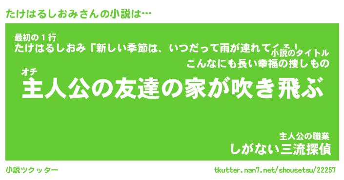 | 男性向けラノベタイトル風あだ名 | 『たけはるしおみの憂鬱』 |
