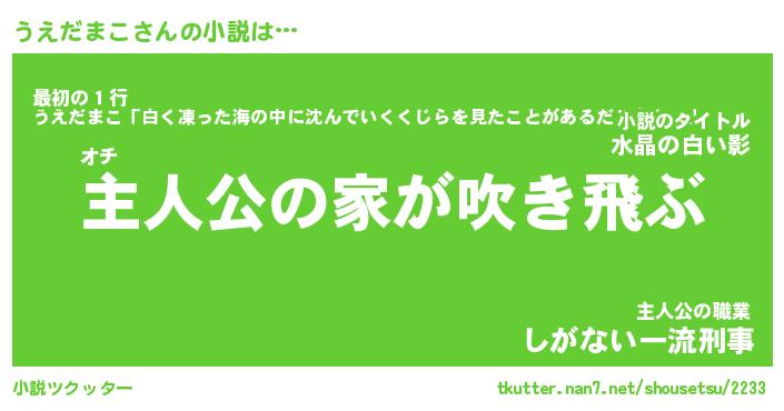 | 男性向けラノベタイトル風あだ名 | 『うえだまこの憂鬱』 |