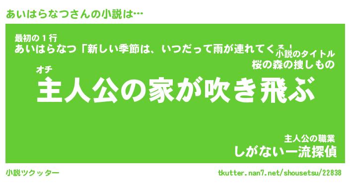 | 男性向けラノベタイトル風あだ名 | 『あいはらなつの憂鬱』 |