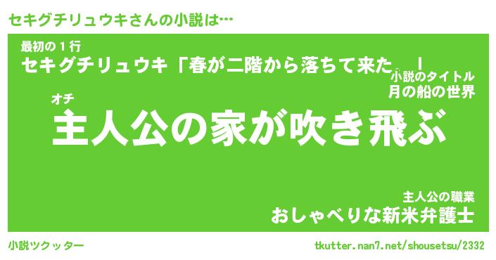 | 男性向けラノベタイトル風あだ名 | 『セキグチリュウキの憂鬱』 |