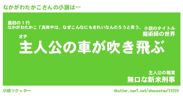 | 男性向けラノベタイトル風あだ名 | 『なかがわたかこの憂鬱』 |