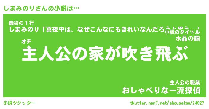 | 男性向けラノベタイトル風あだ名 | 『しまみのりの憂鬱』 |