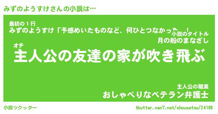 | 男性向けラノベタイトル風あだ名 | 『みずのようすけの憂鬱』 |