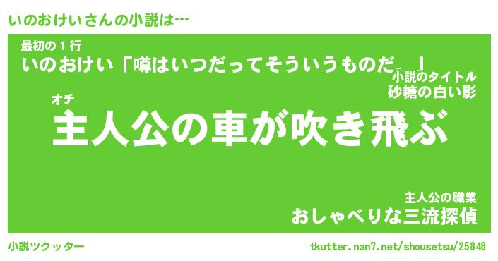 | 男性向けラノベタイトル風あだ名 | 『いのおけいの憂鬱』 |