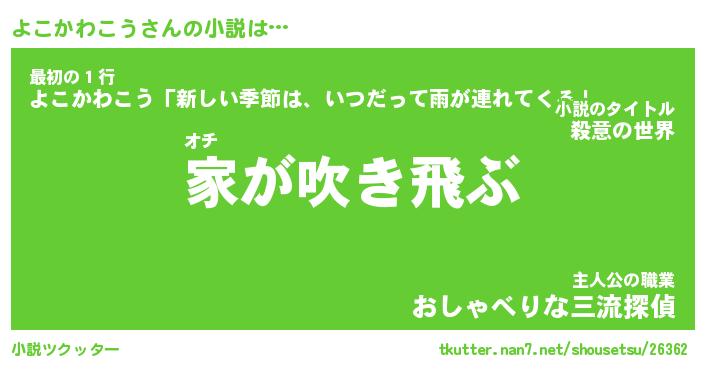 | 男性向けラノベタイトル風あだ名 | 『よこかわこうの憂鬱』 |