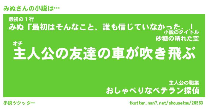 | 男性向けラノベタイトル風あだ名 | 『ミヌアートオンライン』 |