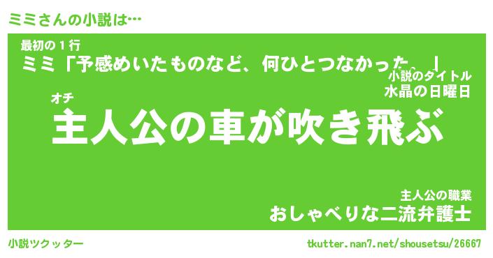 | 魚たちの銀の雨WW …「ケモノ」 | 10月27日 05:47 |