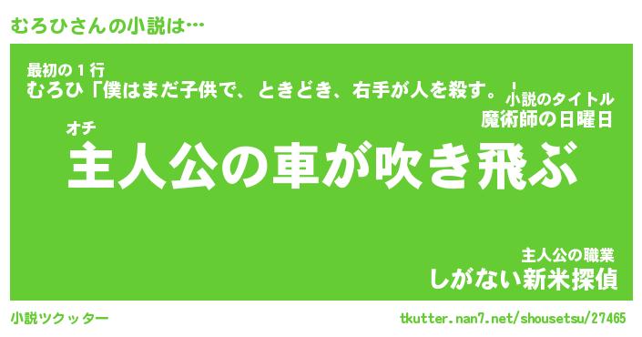 | 男性向けラノベタイトル風あだ名 | 『むろひの憂鬱』 |