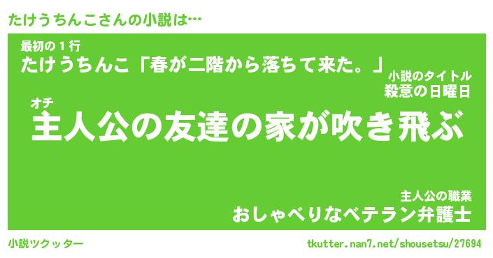 | 男性向けラノベタイトル風あだ名 | 『たけうちんこの憂鬱』 |