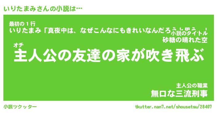 | 男性向けラノベタイトル風あだ名 | 『いりたまみの憂鬱』 |