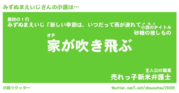 | 男性向けラノベタイトル風あだ名 | 『みずぬまえいじの憂鬱』 |