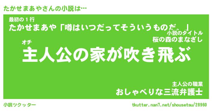 | 男性向けラノベタイトル風あだ名 | 『たかせまあやの憂鬱』 |