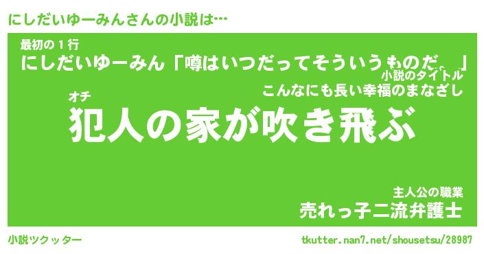 | 胡散臭い通販商品みたいなあだ名 | 『億万長者になれる霊験あらたかなお札…その名も「にしだいゆーみん」』 |