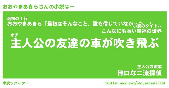 | 男性向けラノベタイトル風あだ名 | 『オオヤマアキラアートオンライン』 |
