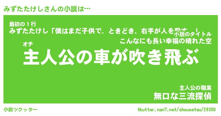 | 男性向けラノベタイトル風あだ名 | 『みずたたけしの憂鬱』 |