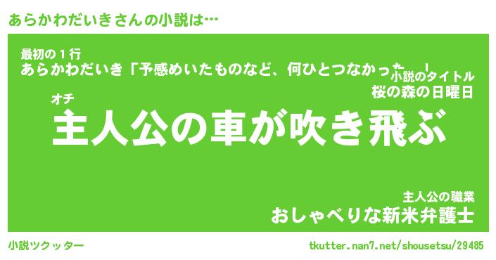 | 男性向けラノベタイトル風あだ名 | 『あらかわだいきの憂鬱』 |