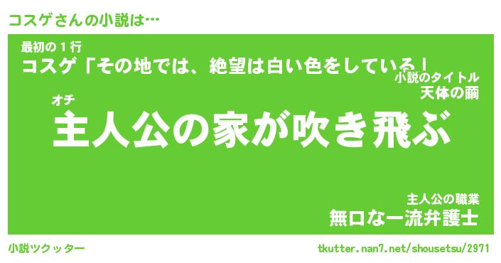 | 男性向けラノベタイトル風あだ名 | 『コスゲの憂鬱』 |