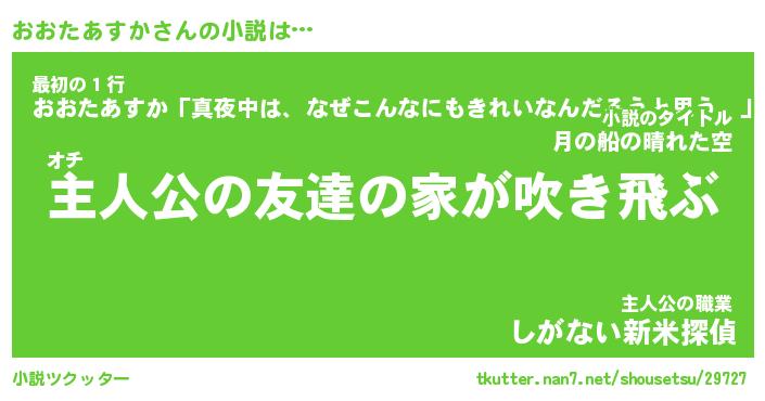 | 男性向けラノベタイトル風あだ名 | 『オオタアスカアートオンライン』 |