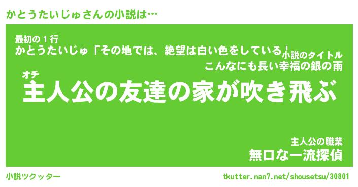 | 男性向けラノベタイトル風あだ名 | 『かとうたいじゅの憂鬱』 |