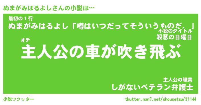 | 胡散臭い通販商品みたいなあだ名 | 『モテモテ間違いなし霊験あらたかなお札…その名も「ぬまがみはるよし」』 |