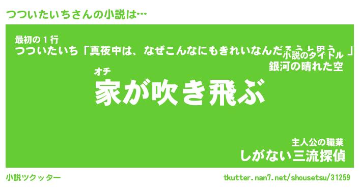 | 男性向けラノベタイトル風あだ名 | 『つついたいちの憂鬱』 |