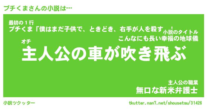 | 男性向けラノベタイトル風あだ名 | 『プチくまの憂鬱』 |