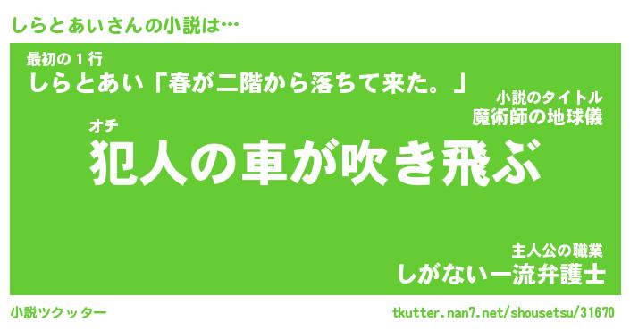 | 胡散臭い通販商品みたいなあだ名 | 『億万長者になれるブレスレット…その名も「しらとあい」』 |
