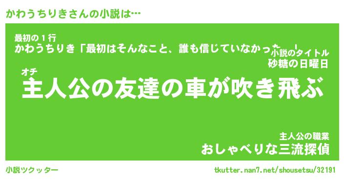| 胡散臭い通販商品みたいなあだ名 | 『モテモテ間違いなし霊験あらたかなお札…その名も「かわうちりき」』 |