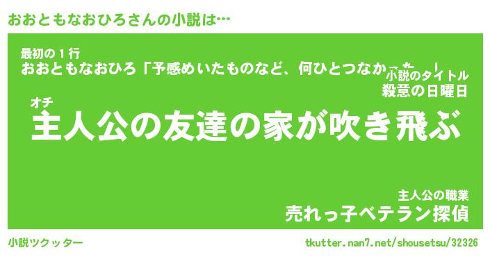 | 男性向けラノベタイトル風あだ名 | 『おおともなおひろの憂鬱』 |