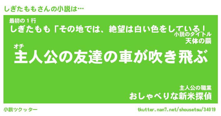 | 胡散臭い通販商品みたいなあだ名 | 『億万長者になれる水晶球…その名も「しぎたもも」』 |