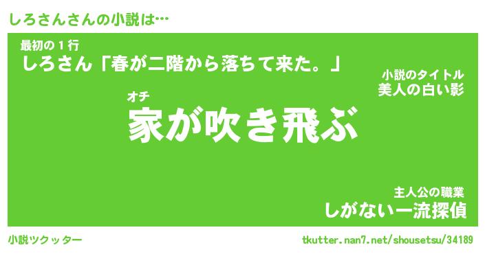 | 男性向けラノベタイトル風あだ名 | 『しろさんの憂鬱』 |