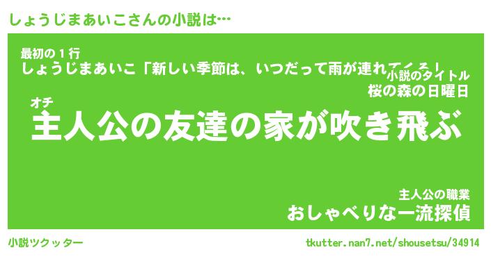 | 男性向けラノベタイトル風あだ名 | 『しょうじまあいこの憂鬱』 |
