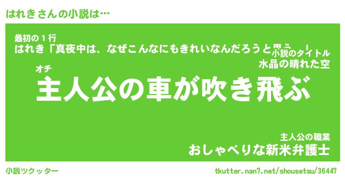 | 男性向けラノベタイトル風あだ名 | 『はれきの憂鬱』 |