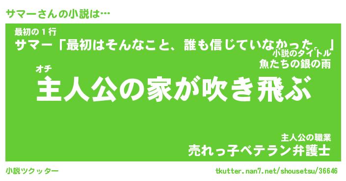 | 魚たちの銀の雨WW …「ケモノ」 | 10月27日 05:47 |