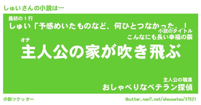 | 男性向けラノベタイトル風あだ名 | 『しゅいの憂鬱』 |