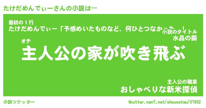 | 男性向けラノベタイトル風あだ名 | 『たけだめんでぃーの憂鬱』 |
