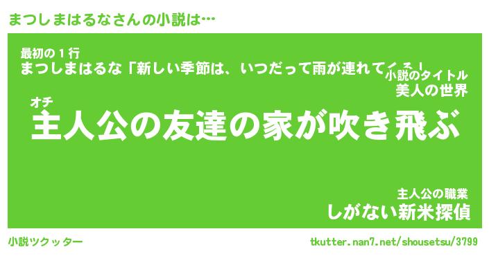 | 男性向けラノベタイトル風あだ名 | 『まつしまはるなの憂鬱』 |