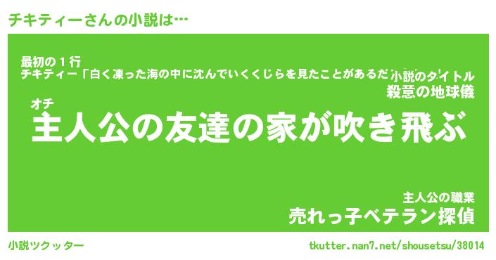 | 男性向けラノベタイトル風あだ名 | 『チキティーの憂鬱』 |