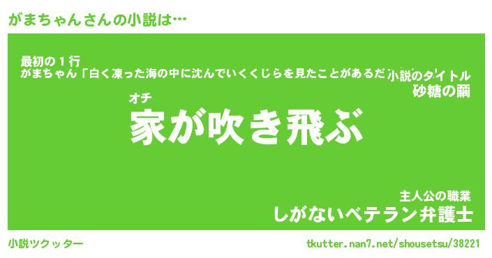 | 男性向けラノベタイトル風あだ名 | 『がまちゃんの憂鬱』 |