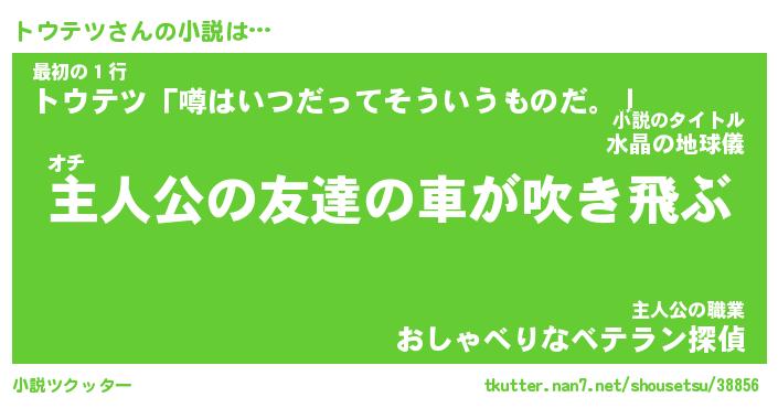| 胡散臭い通販商品みたいなあだ名 | 『億万長者になれる霊験あらたかなお札…その名も「トウテツ」』 |