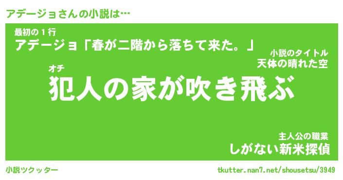 | 男性向けラノベタイトル風あだ名 | 『アデージョアートオンライン』 |