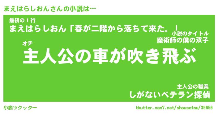 | 男性向けラノベタイトル風あだ名 | 『まえはらしおんの憂鬱』 |