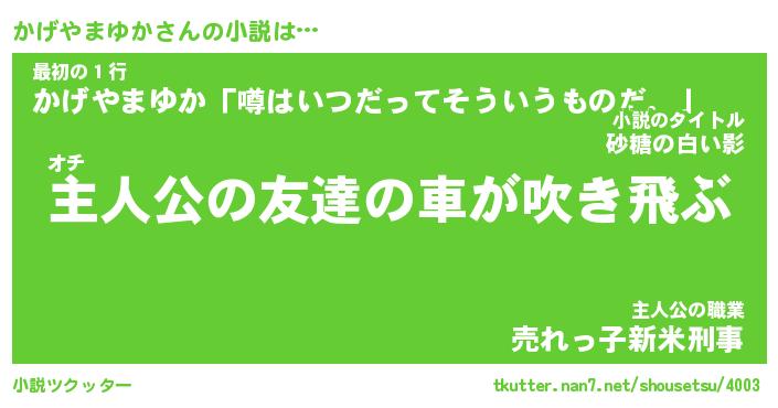 | 男性向けラノベタイトル風あだ名 | 『カゲヤマユカアートオンライン』 |