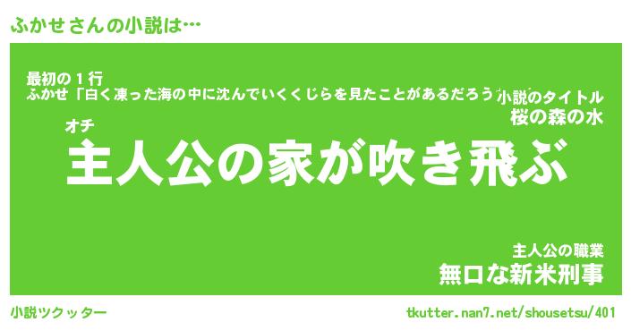 | 男性向けラノベタイトル風あだ名 | 『ふかせの憂鬱』 |