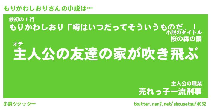 | 男性向けラノベタイトル風あだ名 | 『もりかわしおりの憂鬱』 |