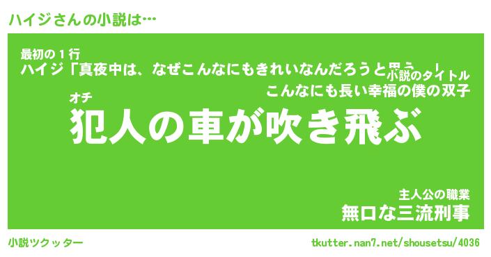 | 魚たちの銀の雨WW …「ケモノ」 | 10月27日 05:47 |