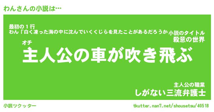 | 男性向けラノベタイトル風あだ名 | 『わんの憂鬱』 |