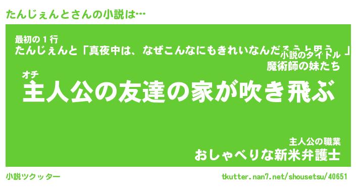 | 男性向けラノベタイトル風あだ名 | 『たんじぇんとの憂鬱』 |
