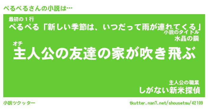| 男性向けラノベタイトル風あだ名 | 『ぺるぺるの憂鬱』 |