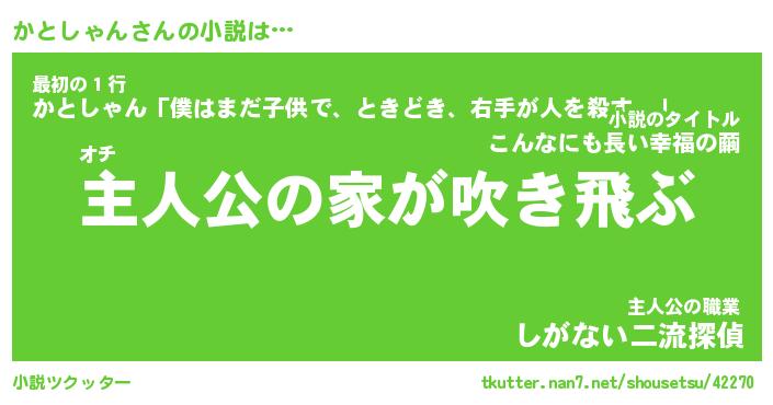 | 男性向けラノベタイトル風あだ名 | 『かとしゃんの憂鬱』 |
